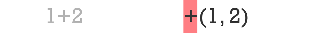 So, the traditional syntax of representing (1+2) is +(1,2) .