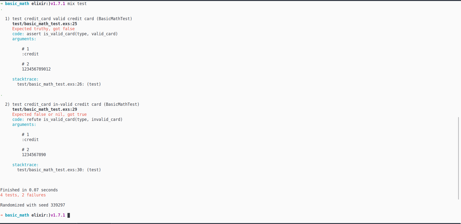 To test this feature, we will create a project basic_math and a simple function is_valid_card/2 which is completely an idiot one. This is used to check whether the given card_number of card_type is valid or not.