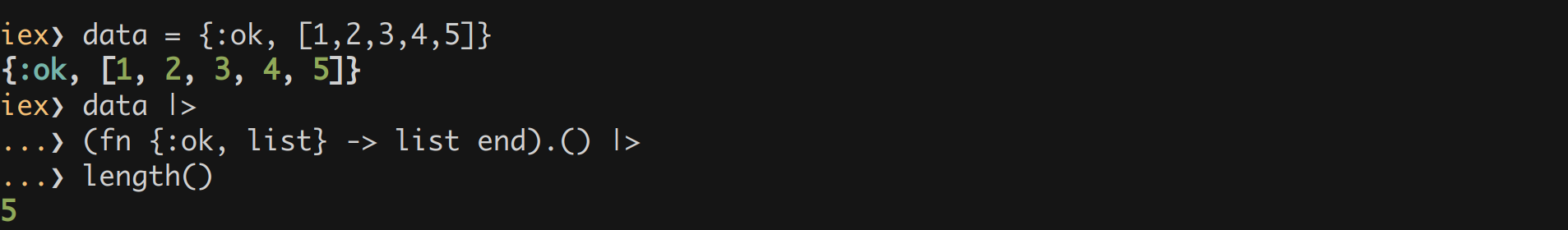 Assume data = {:ok, [1,2,3,4,5]} and we need to pass the data to the next function.
